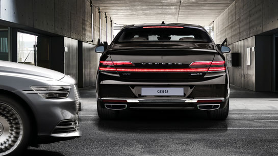 В G90 установлен полный комплект из 10 подушек безопасности, включая коленные подушки безопасности водителя и пассажира переднего сиденья, переднюю и заднюю боковые подушки безопасности, а также шторки безопасности.