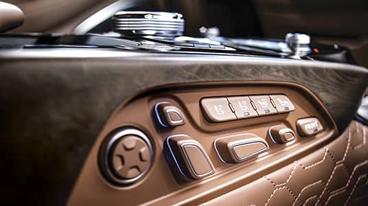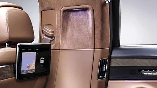 В просторном интерьере GENESIS G90 L предусмотрена удобная подставка для ног, которая поможет расслабиться и отдохнуть.
